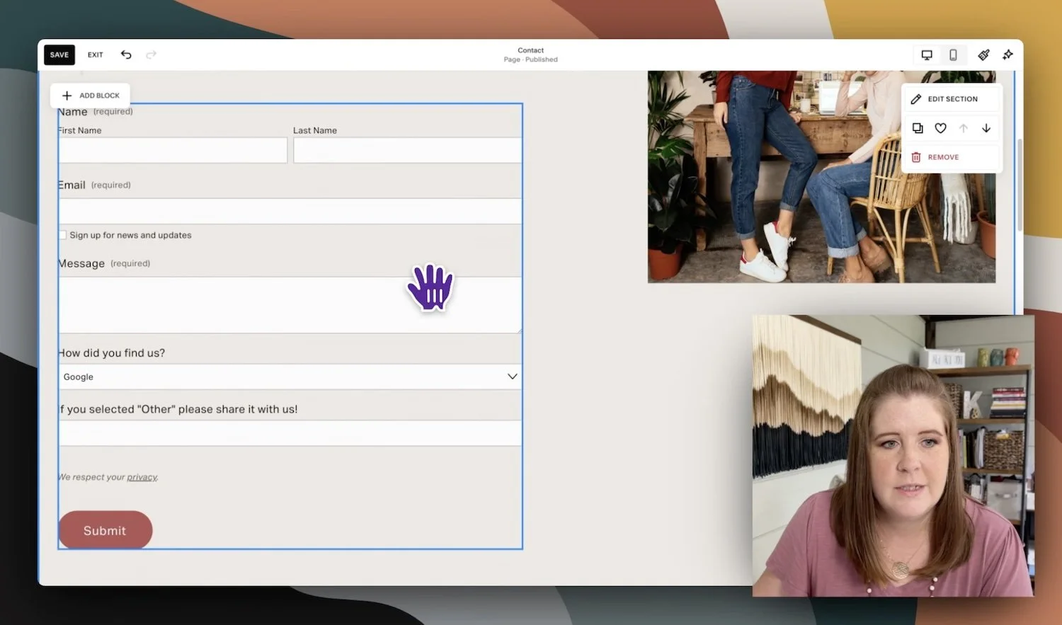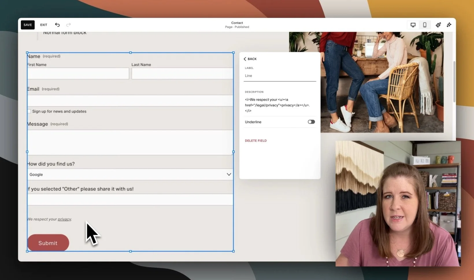 If we Save our changes and Exit out of Edit mode, then we have a contact form that’s fully functional. But just to check before we ask people to use it with us, let's test it out really quick.