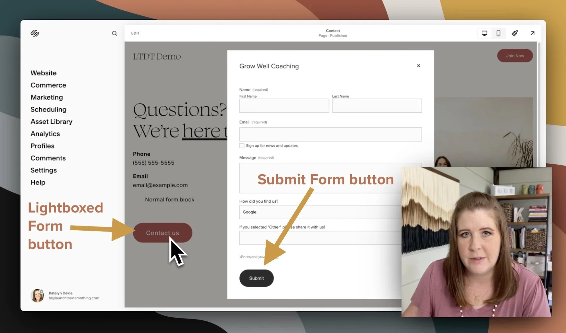 Lightboxed vs. Embedded or Inline forms + their settings in Squarespace