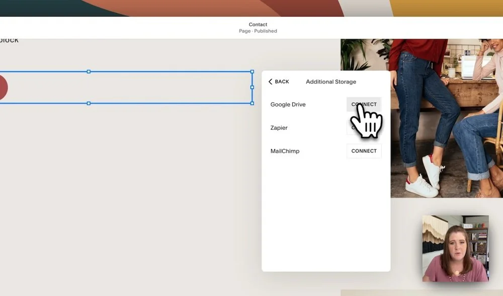 Google Drive – click connect there, you'll get a pop up window that will ask you to log into your Google account, give them permissions (to add form data to a Google Sheet for you), then it will ask you to name the spreadsheet. Essentially, that has connected this form on this page to a brand new Google Sheet in your Google Drive account. If I name the Sheet (example) “Contact page demo”, I can see that Sheet in my Drive account & Squarespace + Google will create a database of all form submissions for this page’s form in this Sheet. (Yes, you can use this AND the Email Notifications setting together.)