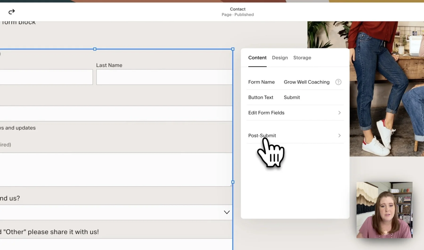 Next, we’ll leave the Edit Form Fields part of settings, and go back to the main Content tab in Form’s settings, then click Post Submit and you have two options for what happens after they submit the form.