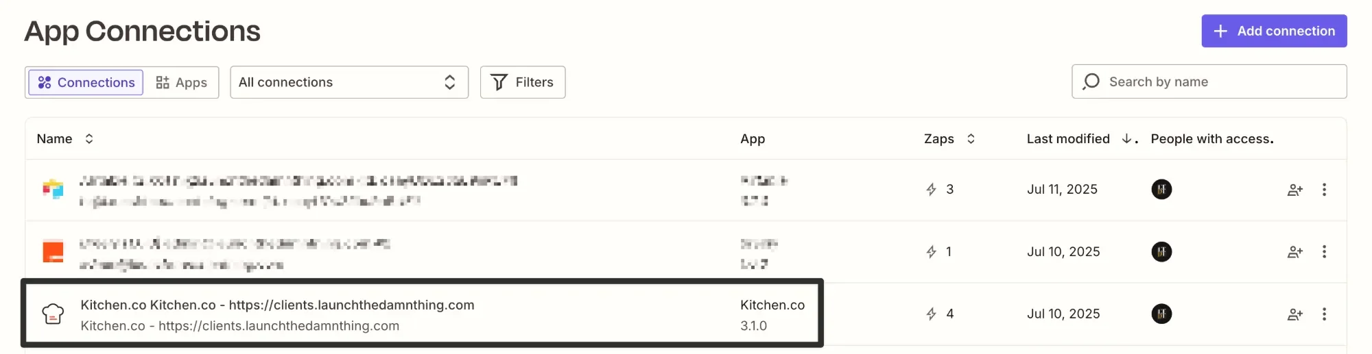 Once you're sure you've connected the latest version of their API, then connect your Kitchen account to this zap, the same way you did with your CRM.