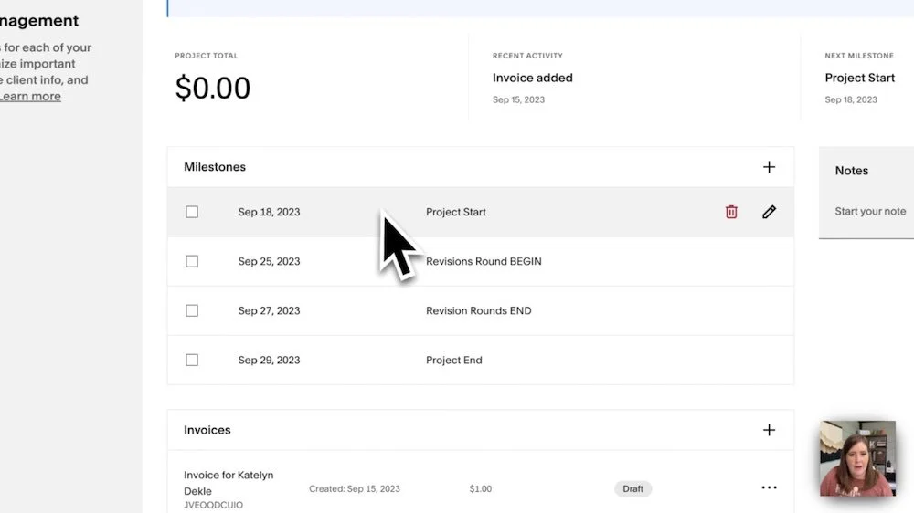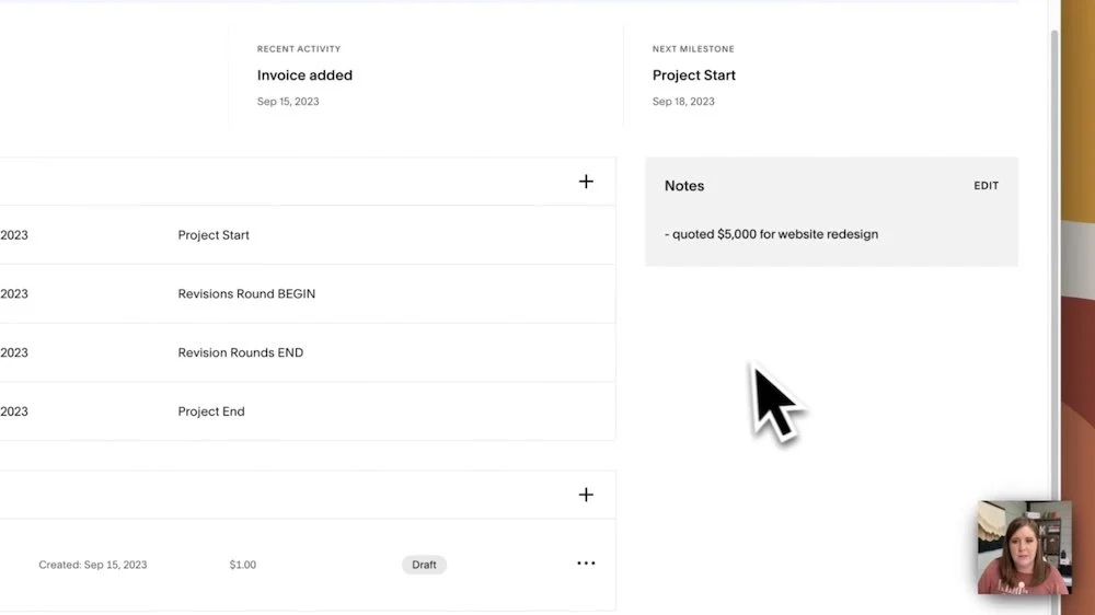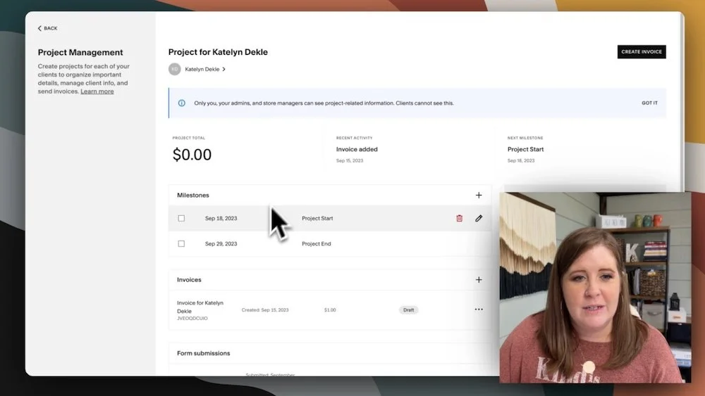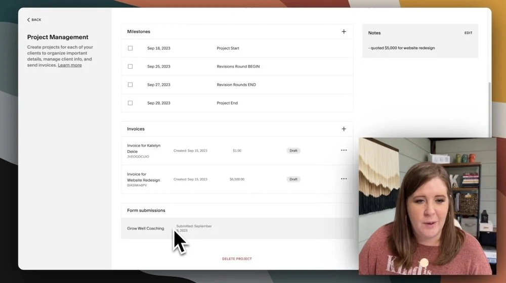 This feature is not for our clients to use WITH us and that means they can't see any of this. The only interaction that clients can have with the Project Management feature in Squarespace, as of posting in fall 2023, are the actual invoices they will receive once I've sent them & any associated reminders I set for those invoices.