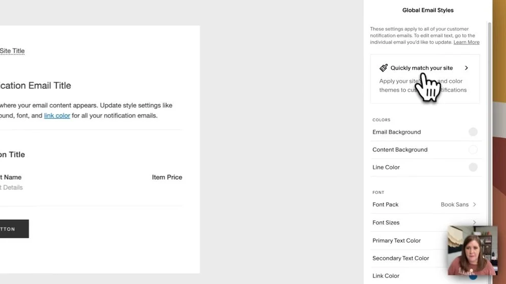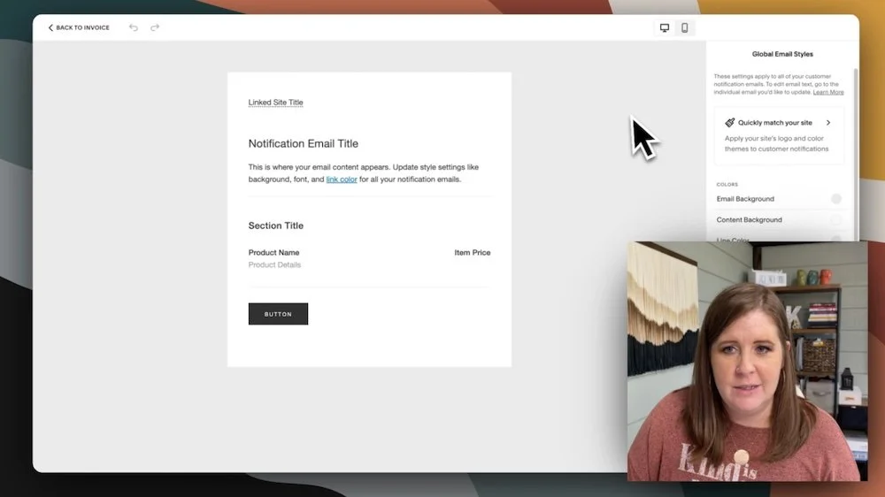When you create your first new invoice, you may decide to use the Global Email Notification’s styles to automatically pull in the same styling for the invoices as you may already be using for shop notifications or designs for Email Campaigns newsletters (Squarespace’s built-in basic email marketing service). Or you can decide to make the invoices look a bit different by setting the styling for invoices separate from your Global Email Notifications styles.
