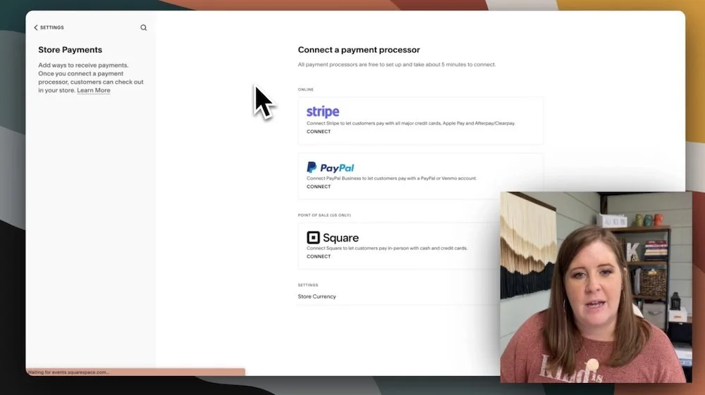 On the first invoice we send, it may ask you to connect a payment processor, such as Stripe, Square or PayPal to process the payment for us. In this demo site, I don’t have any kind of payment processor already hooked up to it, but if your website has a shop that takes payments already, then you may be able to skip this step because it’s already set up for the shop.
