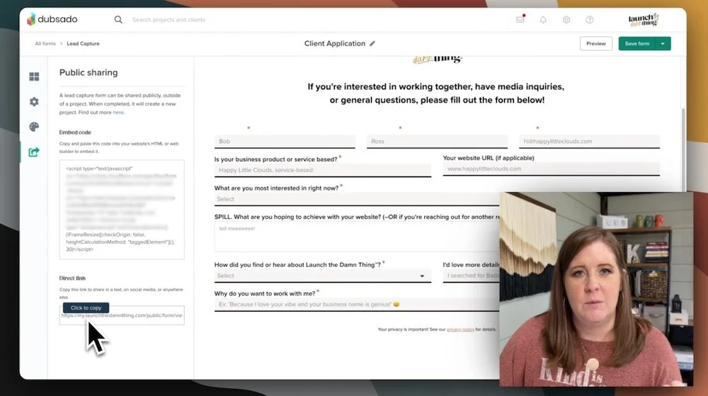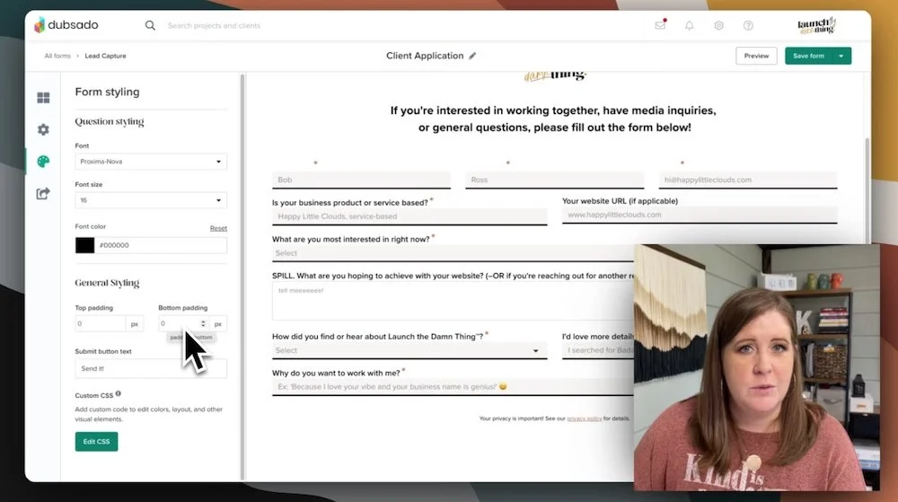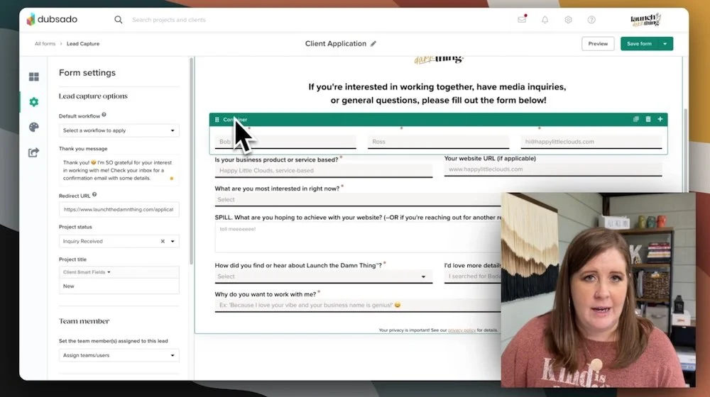 If you’re Dubsado-curious and want to peek into my actual Dubsado account, let’s peek at the setup of my client lead capture form & how the form-builder works.