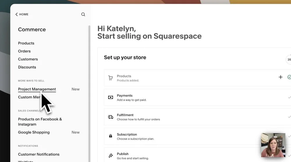 Look for Commerce or Selling, then click on Project Management. That'll swing us into the same Project Management portion of Squarespace.