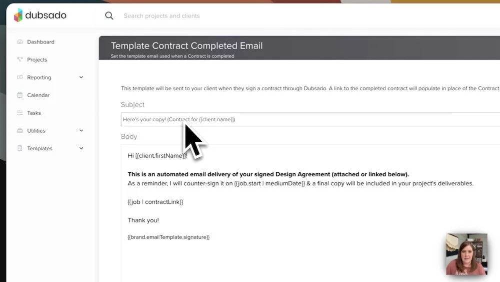 When the client signs, Dubsado sends an automated email from Dubsado-land with a temporary copy of the contract with their signature. You can edit the automated email to explain what this is and when you will countersign the contract from the Canned Emails area within the Templates menu.