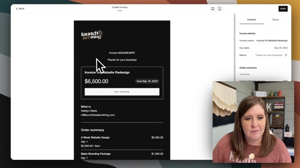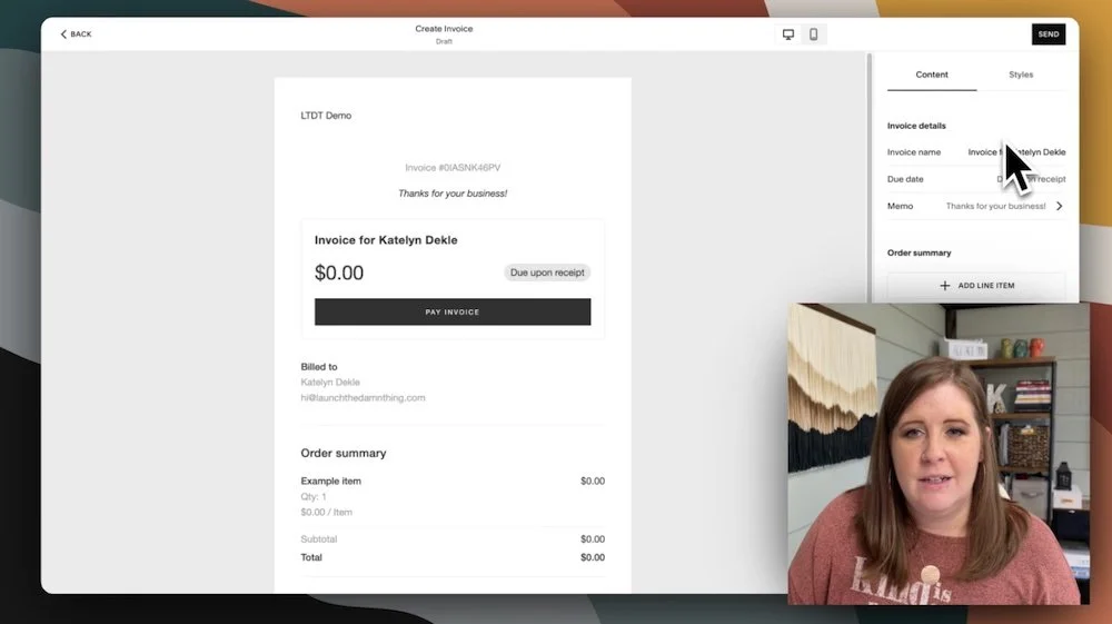 Since I can't actually demo the invoice payment part of this process, I don't know what the receipts or automated emails for reminders looks like. I haven't tested those parts yet, because Test Mode doesn’t appear to be an option for this part of Squarespace Commerce and I'm not going to pay myself to test it. 😂
