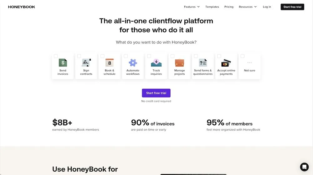 So, if you're unsure about whether or not you can use HoneyBook based on where you live or run your business, Bonsai or Dubsado would be your next best bet!