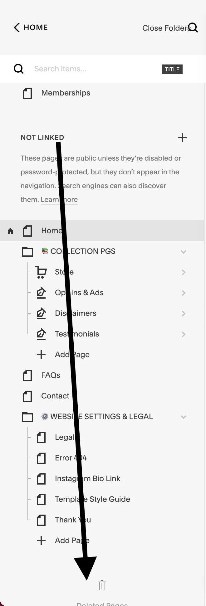 side note: you can use folders in the Not Linked section to organize your pages into groups of similar content - the pages being inside a folder doesn’t do anything when they’re in the Not Linked section