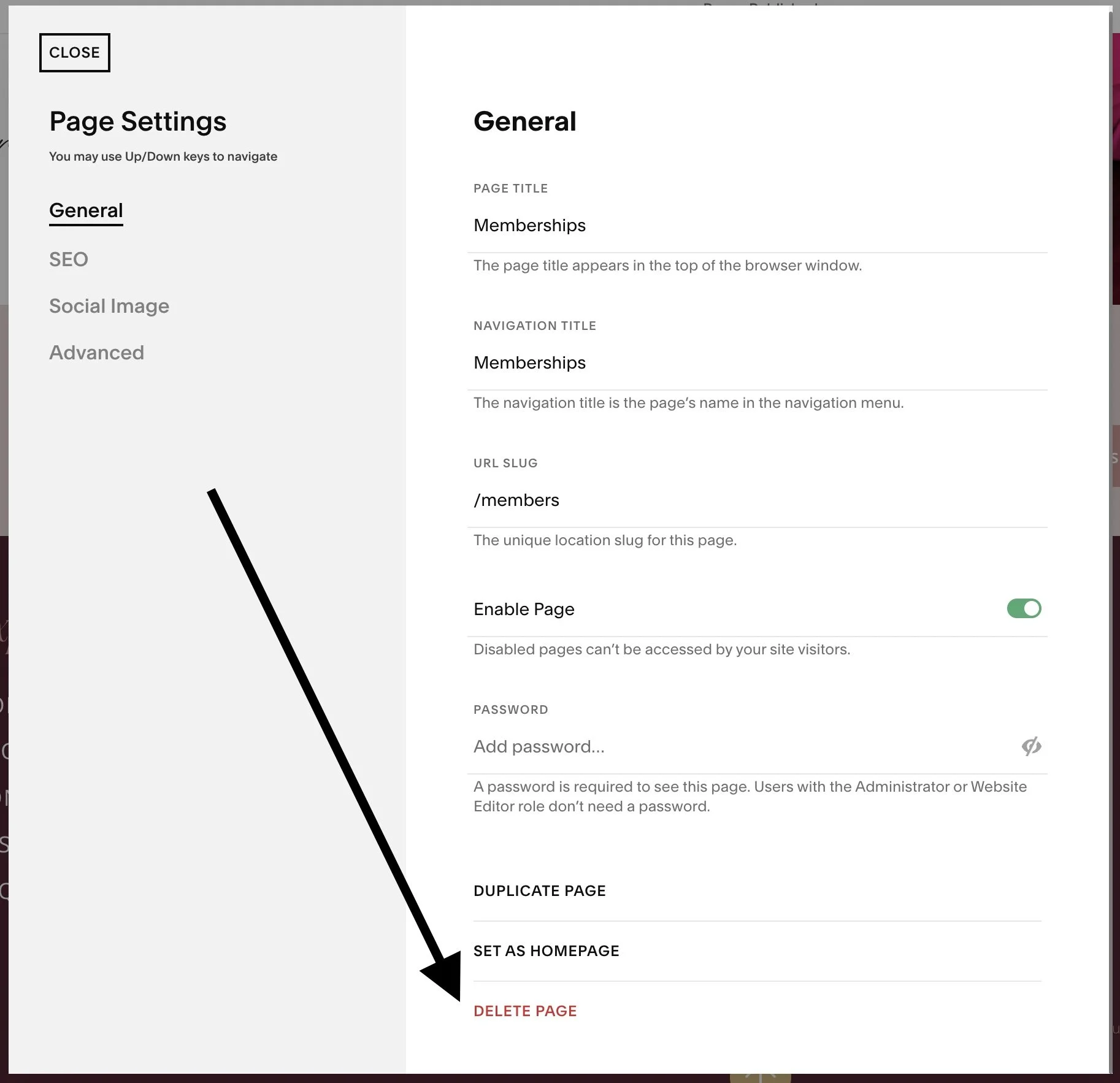 How to delete page content on Squarespace