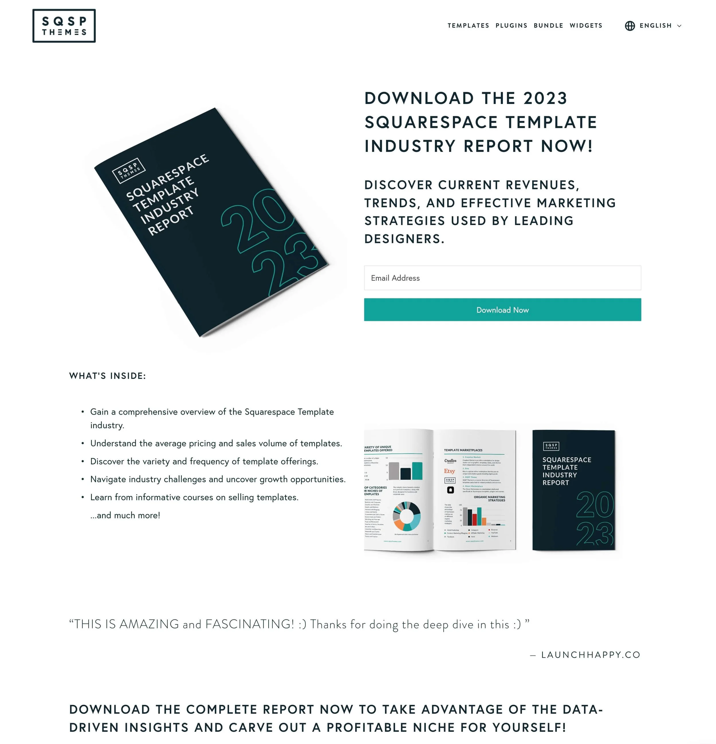 Katelyn: Yeah. I think, was it Omari of SQSP Themes that just did the industry [web design templates] report. That was so fascinating for that. If you're curious about the numbers, I'll try to remember to link that report below. But it's really fascinating to see, like, what the price ranges are, how long it took them to scale... So if you want to know, like, the backside of what this passive income business typically looks like, that's a really good, insightful thing to look at.
