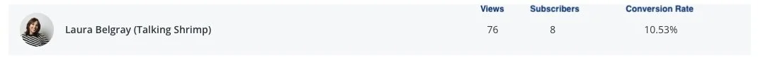 screenshot of ConvertKit's Creator Network analytics from Laura Belgray's recommendations
