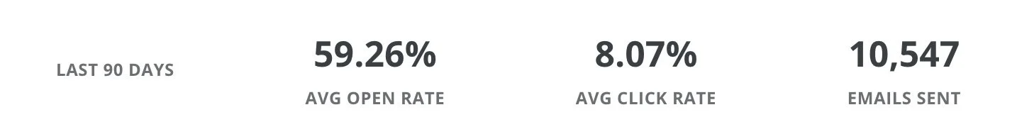 Right now, as of posting, my 90-day open rate is 59.26% and my 90-day click rate is almost 8.07%, nearly more than double what my last stats were in FloDesk!