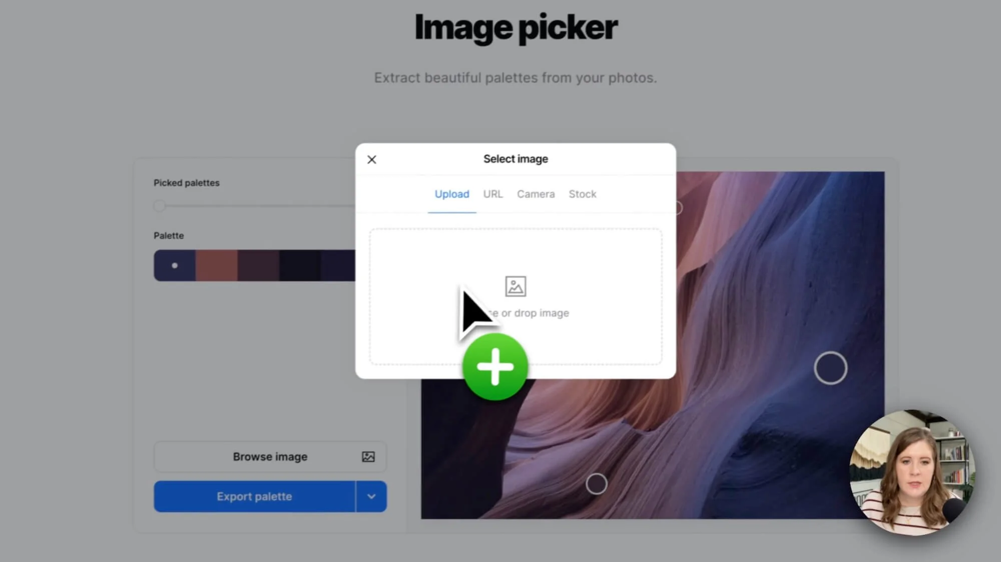 Start building a palette using their Image Picker tool, which you can access from the hamburger menu icon in the top right.Choose Your Image: