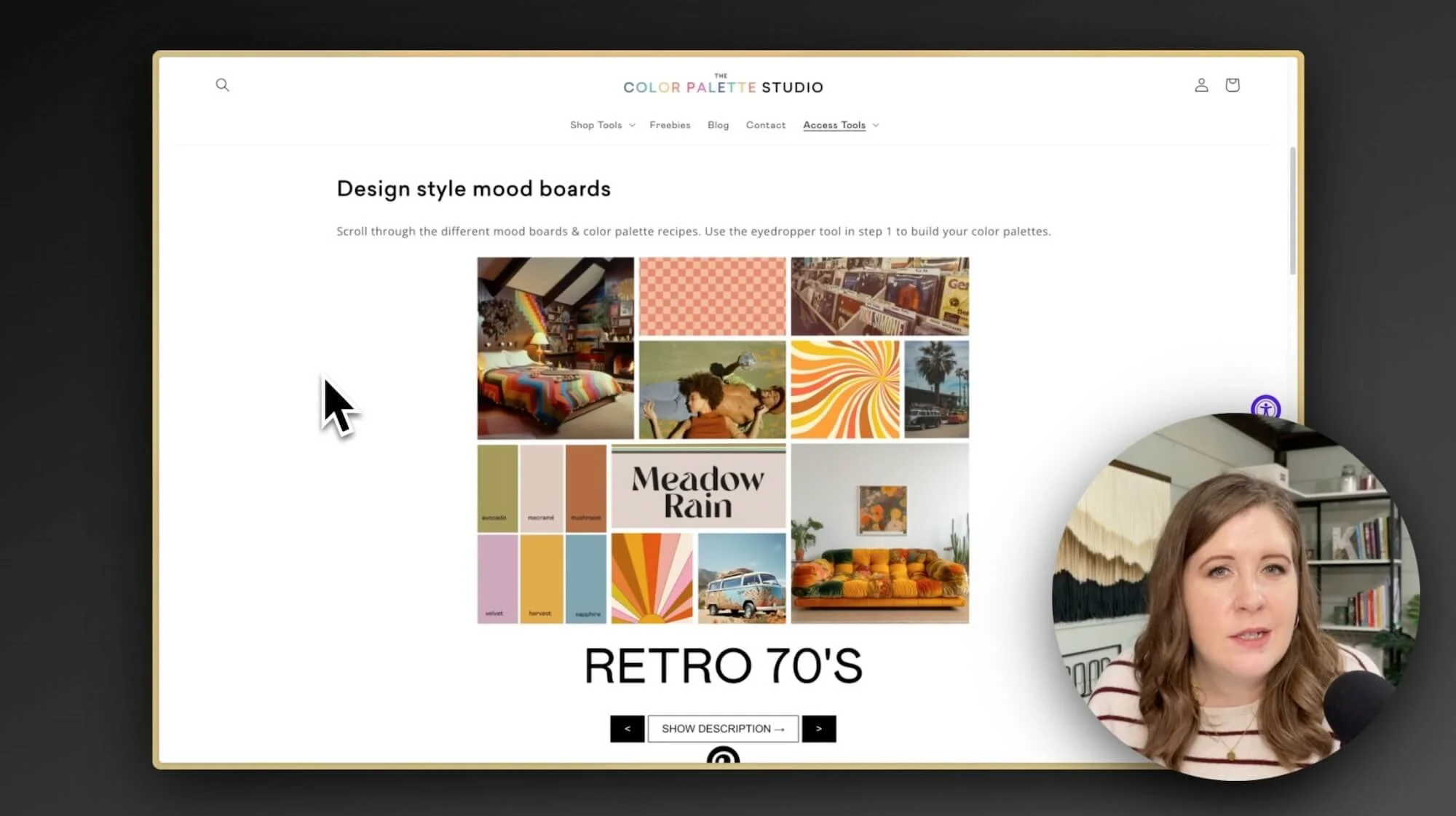 The tool offers around 20-30 different color styles to choose from, displayed in a mini mood board with a description of each style (& more are added frequently!). Select one that aligns the best with the client’s desired vibe.Understand the Color Breakdown: