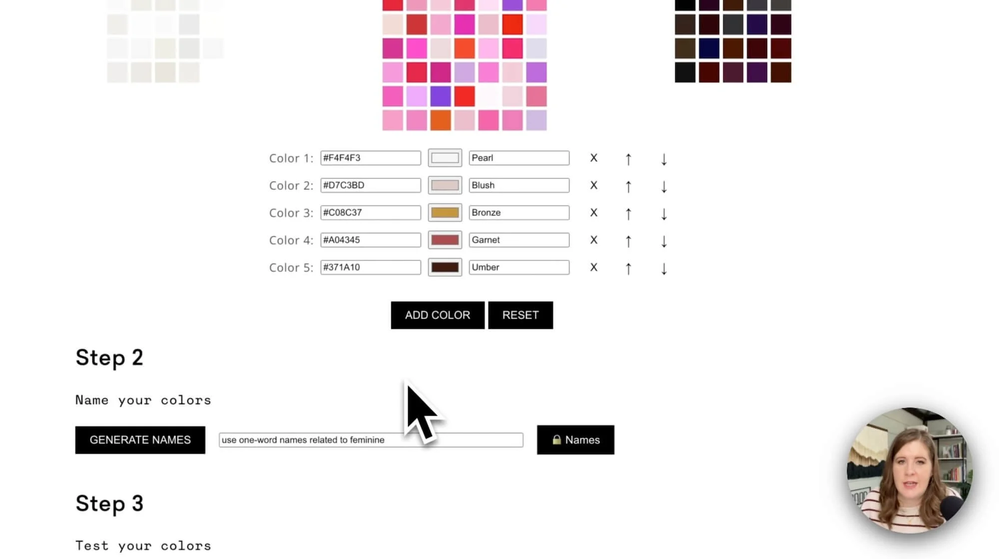Now, use the AI generator to give your colors fun names! It saves time & effort, and now you don’t have to revert to standard color names that aren’t distinctive, just because you couldn’t think of anything appropriate for each one. 😂 (Coolors will do this for you automatically too, if you don’t use the Color Palette Builder.)Check Accessibility: