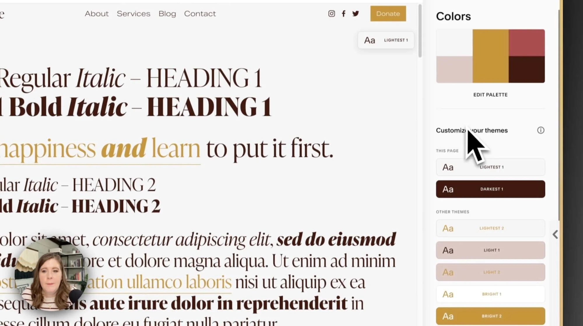 Once I've decided which color palette I think will work best, it's time to bring it to life in their website! I head over to Squarespace (or whichever website builder you’re using) and apply the palette to the website’s style settings.