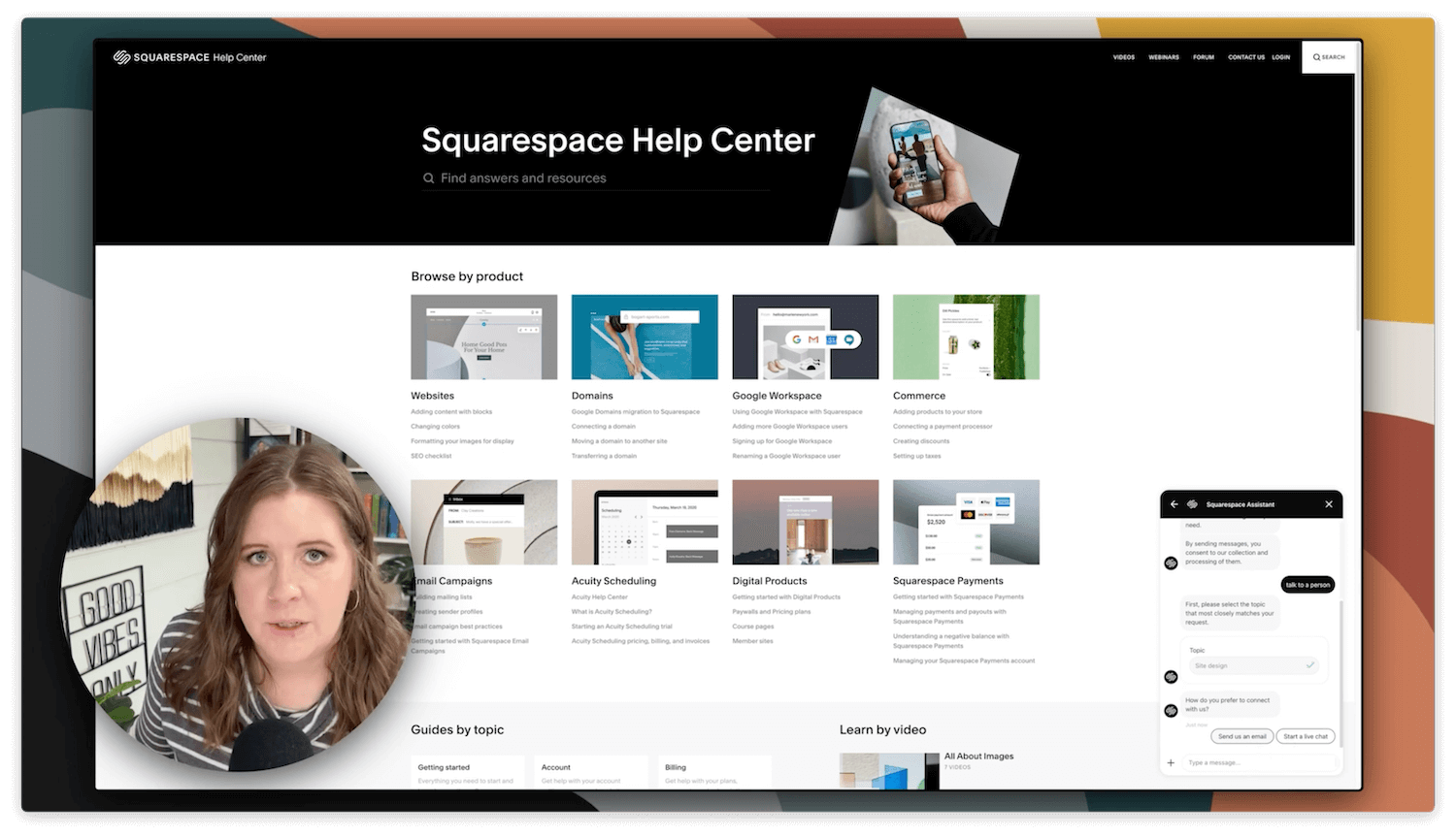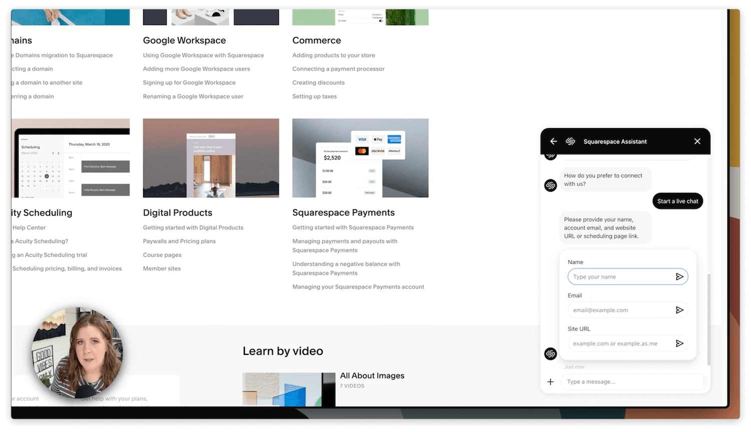 I'm a Squarespace educator and web designer, and graphic designer by trade. I've been using Squarespace for a long time and I know a lot of tips and tricks that can help you get things done a little bit faster, ––like today's tip for contacting Squarespace support and bypassing that really annoying, basically never useful (in my experience), AI chat bot.