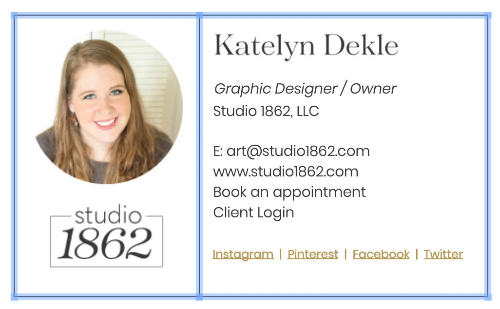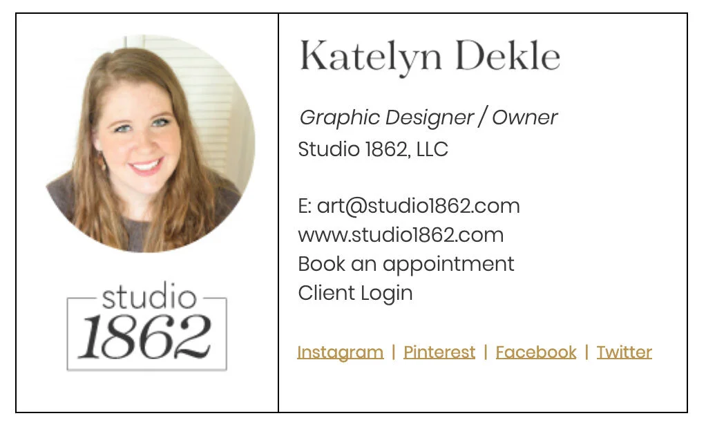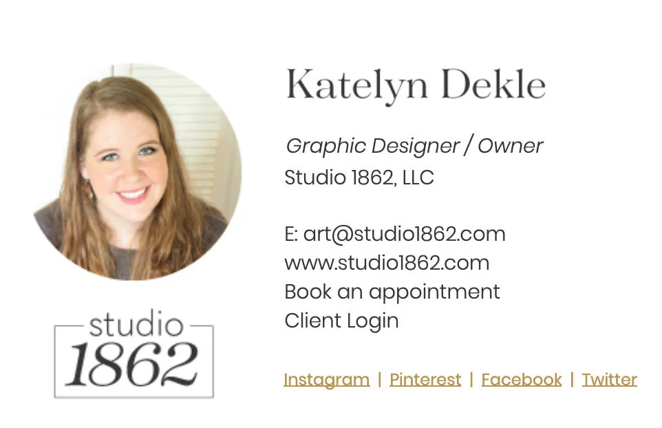 Free & easy, these require very little effort & are copy-and-paste-able into most email settings, including Apple Mail, Gmail, the Spark app (read about it here; that’s what I use!), and Outlook.