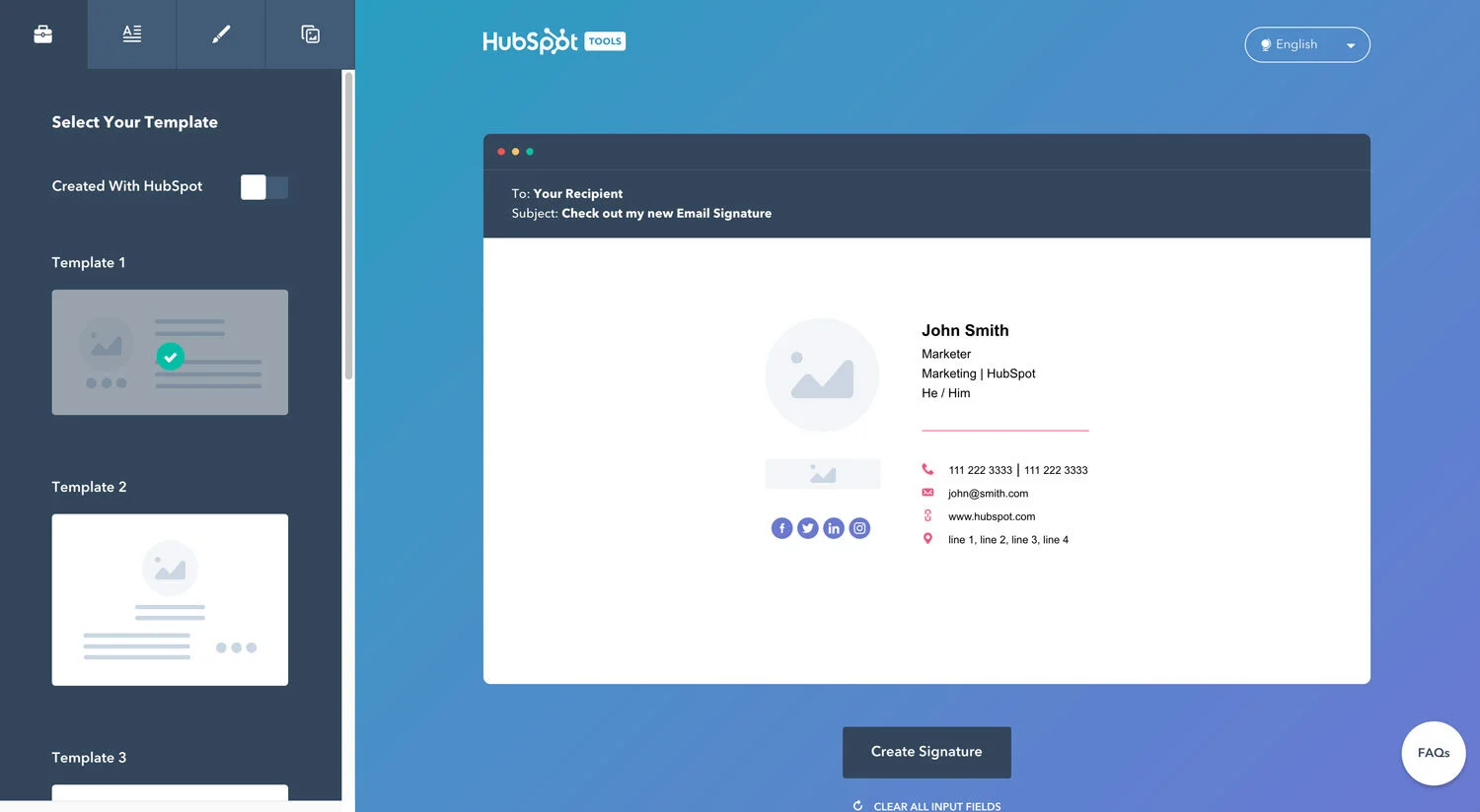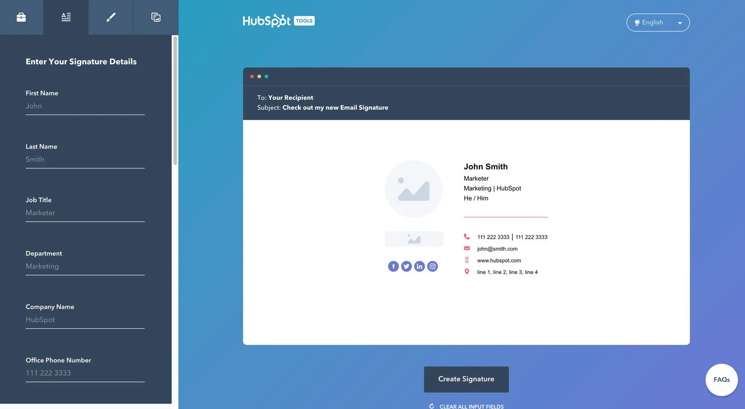 Use Hubspot's free email signature generator