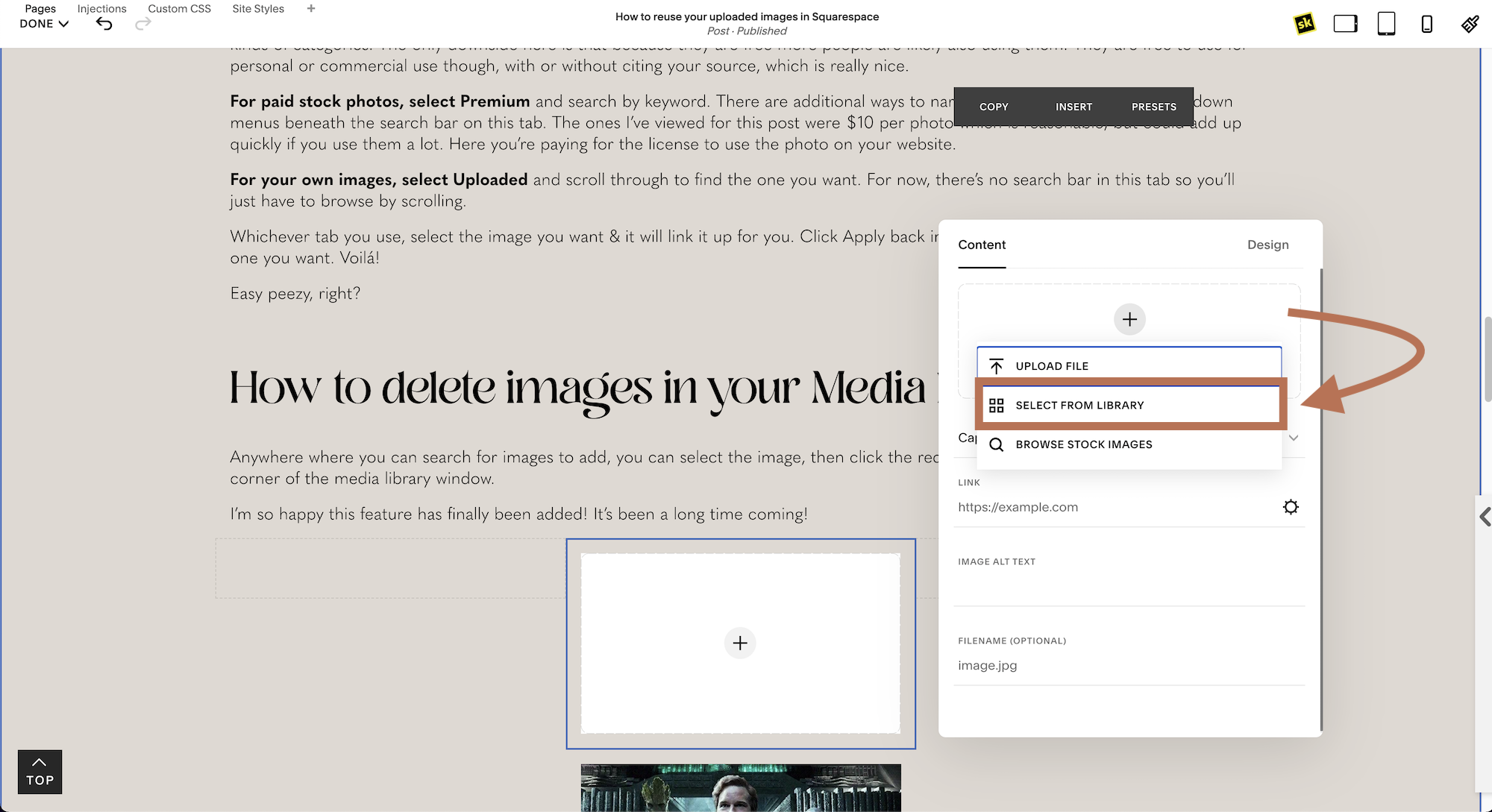 One downside (besides not having access to this if you’re not a Circle Member 😬 I swear I’m not rubbing this in your face!) is that it doesn’t currently warn you if that image is being used on the site somewhere & where before it’s deleted. So if that image was being used, that image block is now ‘broken’ and blank. For now, there’s no workaround for that, you just gotta be really careful whatcha delete!