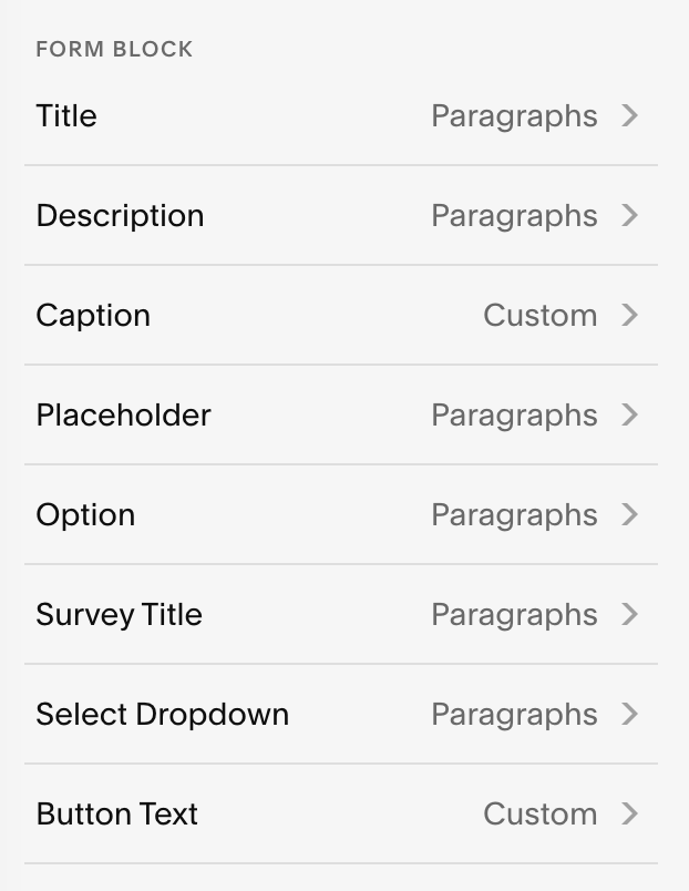 a section named Form Block will be at the bottom of this list as long as a form block is actually on the preview page you’re viewing. Now you can set the fonts for: