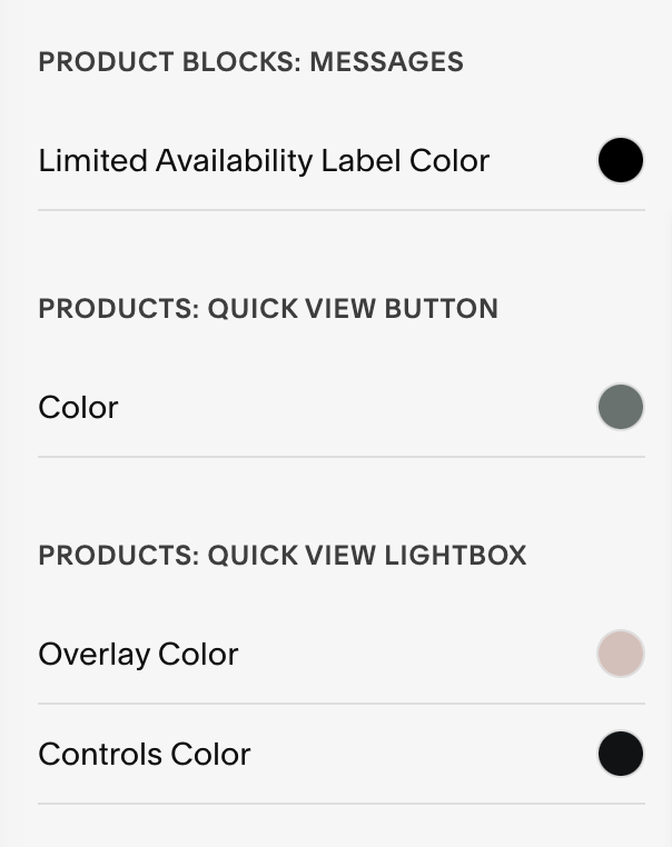 Under Products: Quick View Button, change the color (this is the background color of the button, not the text on the button)