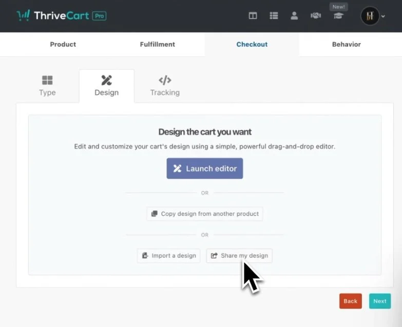 Get the checkout URL (for full-page checkouts) or the embed code to use this ThriveCart cart page on your website, etc.