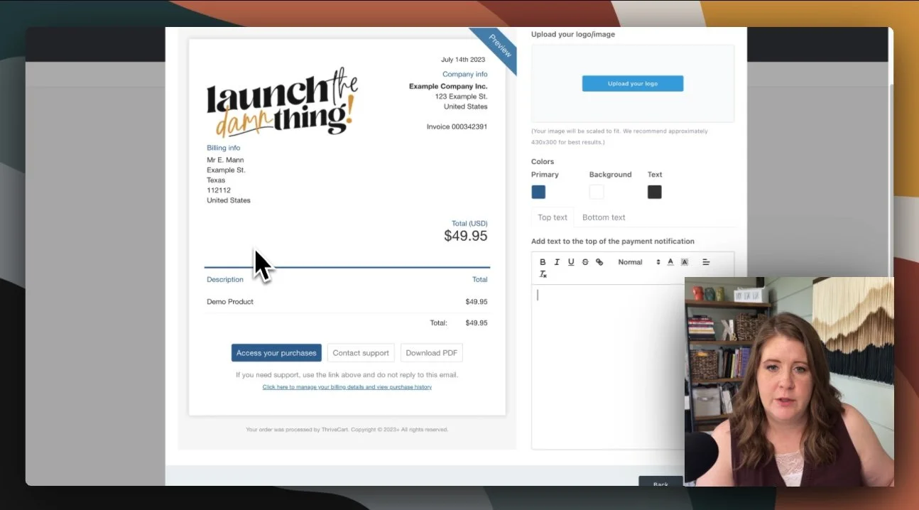 Remember earlier that we chose to fulfill the product by showing the invoice page? This is where you edit what that looks like.