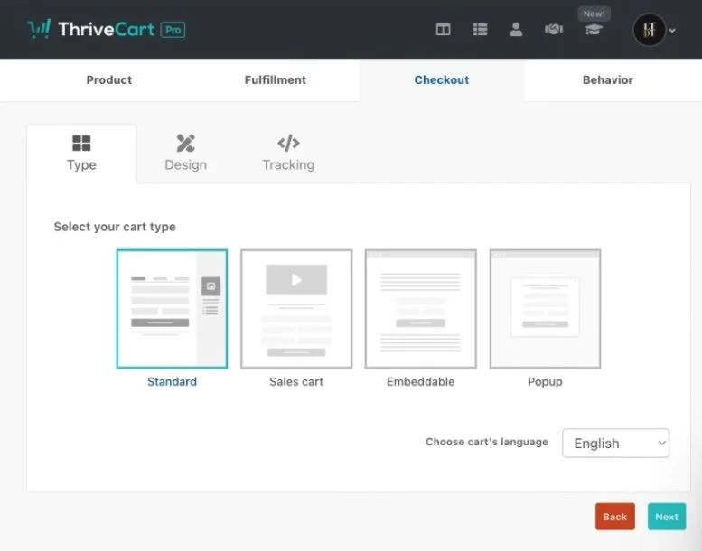 Why? Because for the Standard Cart option, no embed code is used at all; you only need the cart page link from ThriveCart to use it.