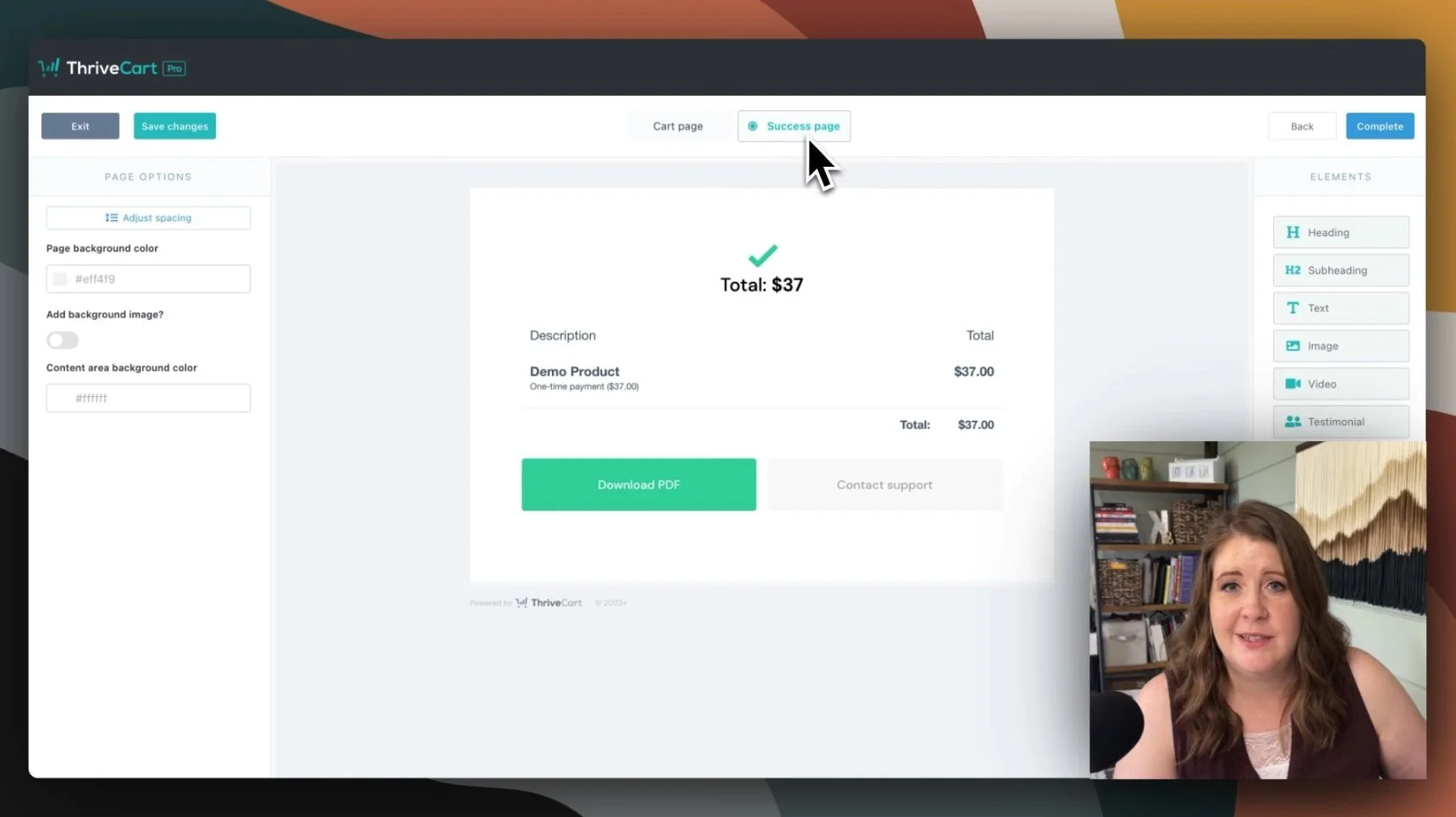 Editing the success page in ThriveCart, for what happens post-purchase