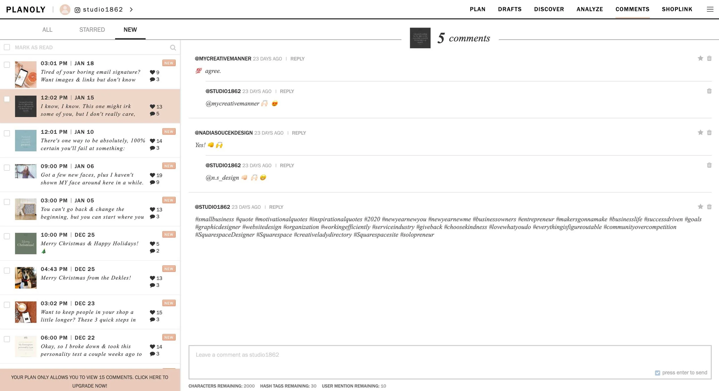Managing comments from your Planoly account can be a time-saver, actually.