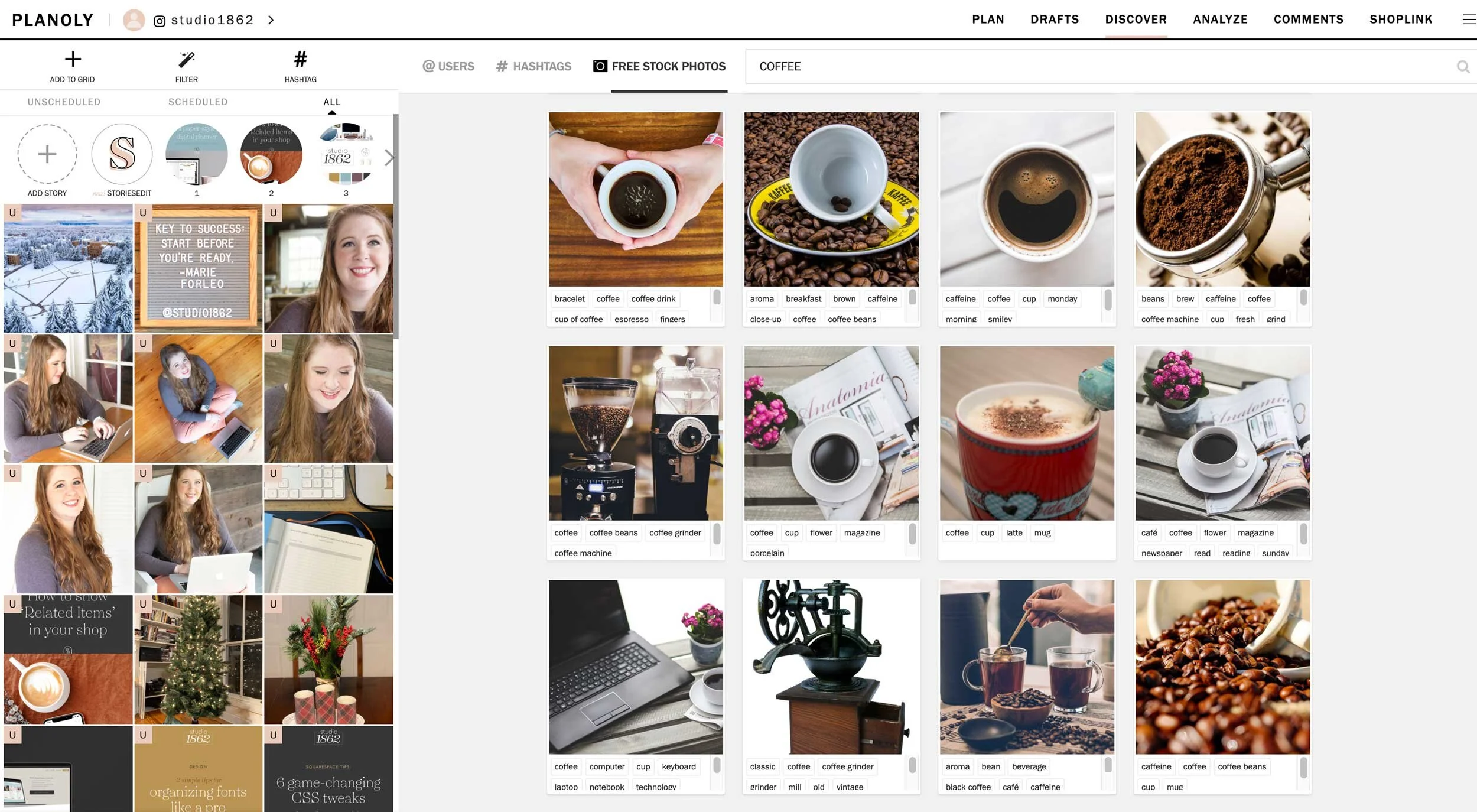 You can even find stock photos from this area of Planoly’s app!
