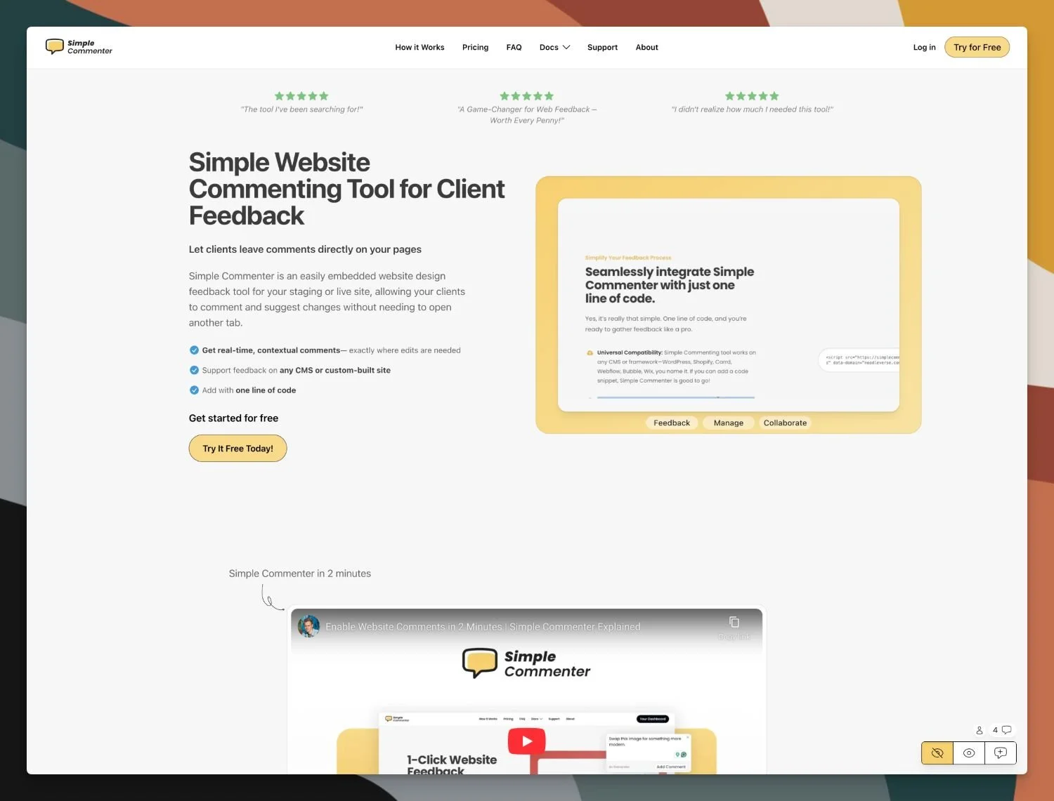 Simple Commenter’s functionality is actually INSTALLED on the website itself, which means users aren’t leaving feedback on a separate application that’s loading in your website to another company’s web app ––it’s actually loading Simple Commenter’s app ONTO your website.