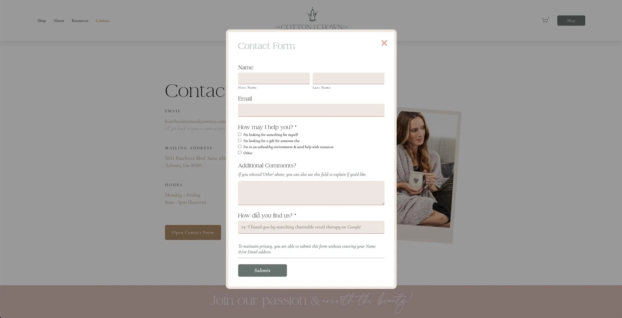 However, there are some cases where it makes more sense to put the shop on Squarespace, based on the focus and individual needs of the client –and that's exactly what I did for Katherine, owner of The Cotton & Crown Co.