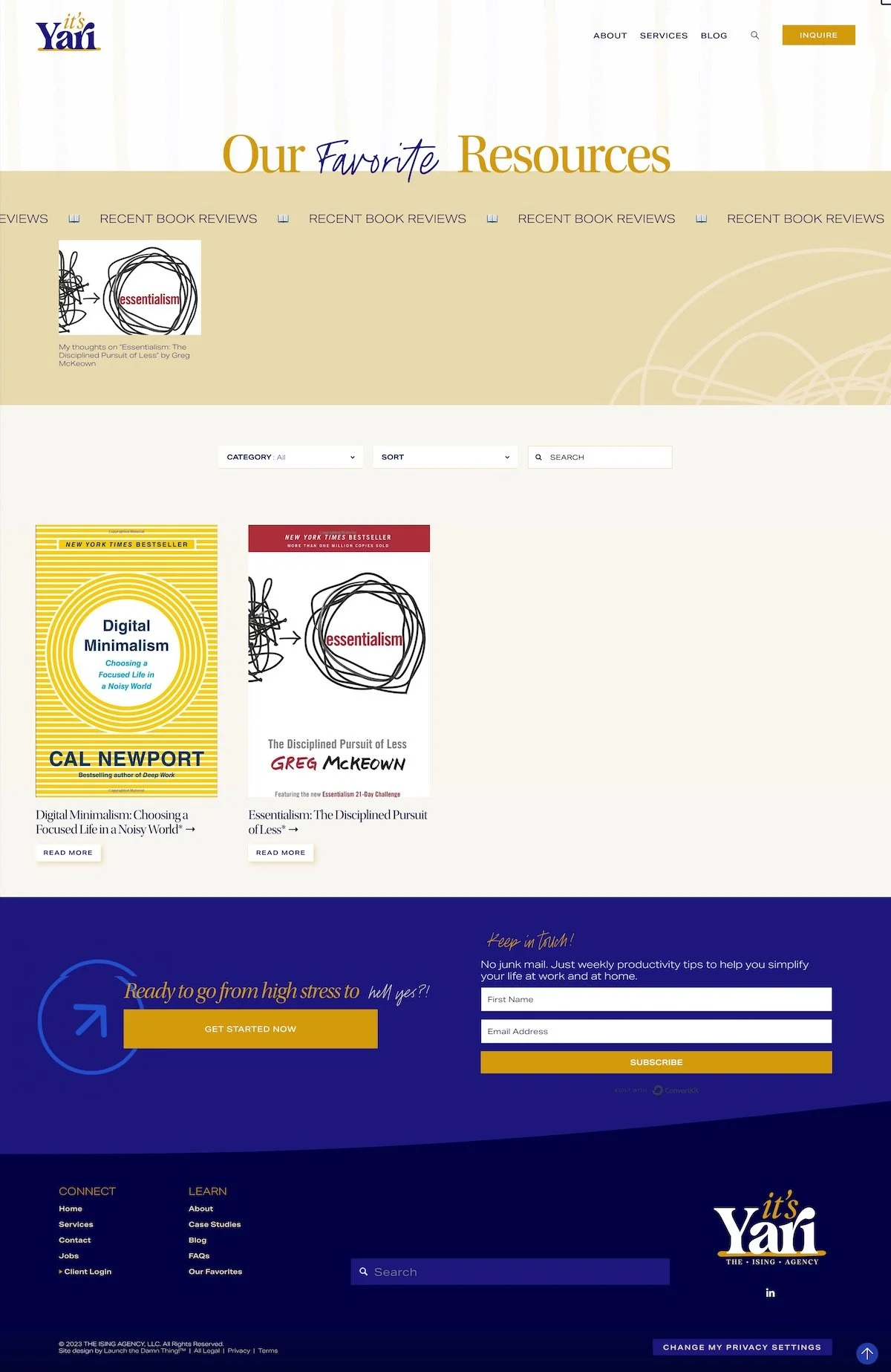 The favorites page will be the place where Yari gets to put all of her favorite things, whether it's productivity tools or her favorite books or a recent article or whatever she wants to put in here. Including recent book reviews. So we have that kind of call out section across the top because like me, she likes to read, which I always respect a fellow reader.