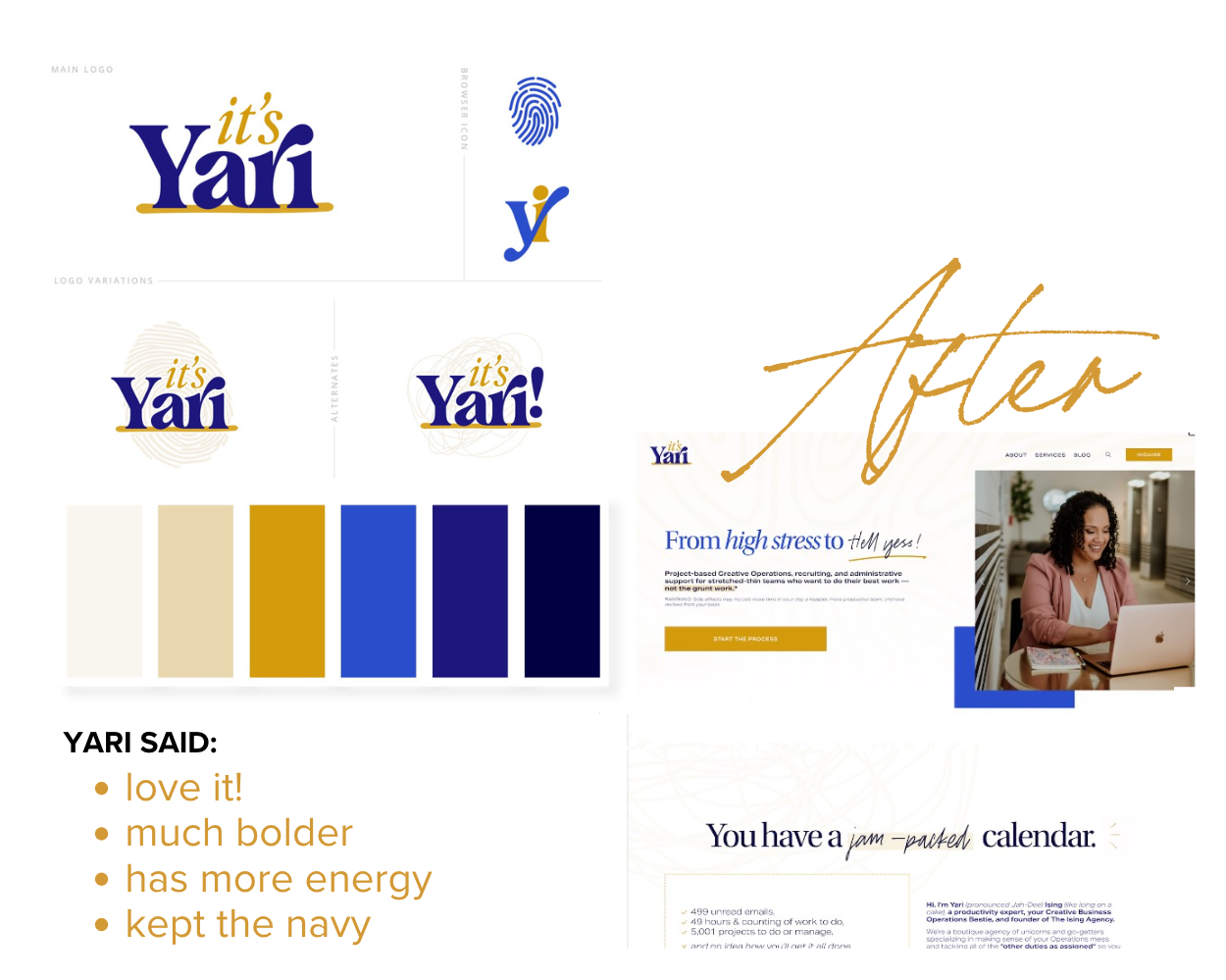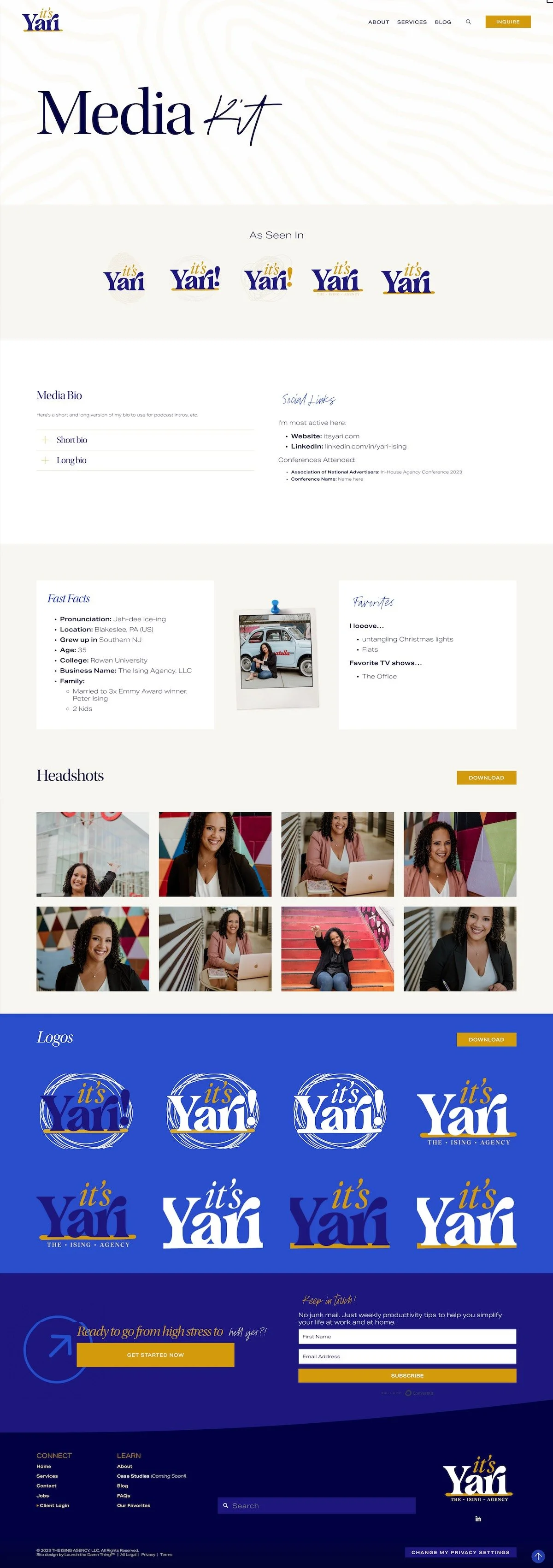Well, let's dive into Yari's website and I'll show you a little bit of the, before we also did a rebrand for her, right before we did the website design. I'll show some clips of our presentation and then walk you through the website.