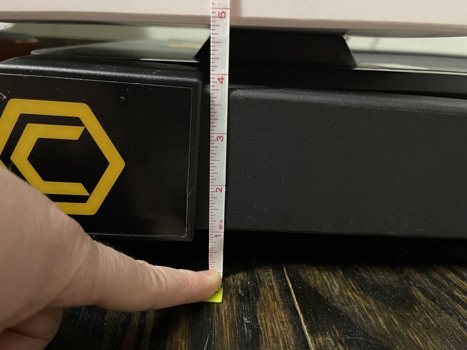height: it’s 4.75in or just under 12cm tall, measured from the floor to the highest point on the deck, with arms folded down (see measurement photos below)