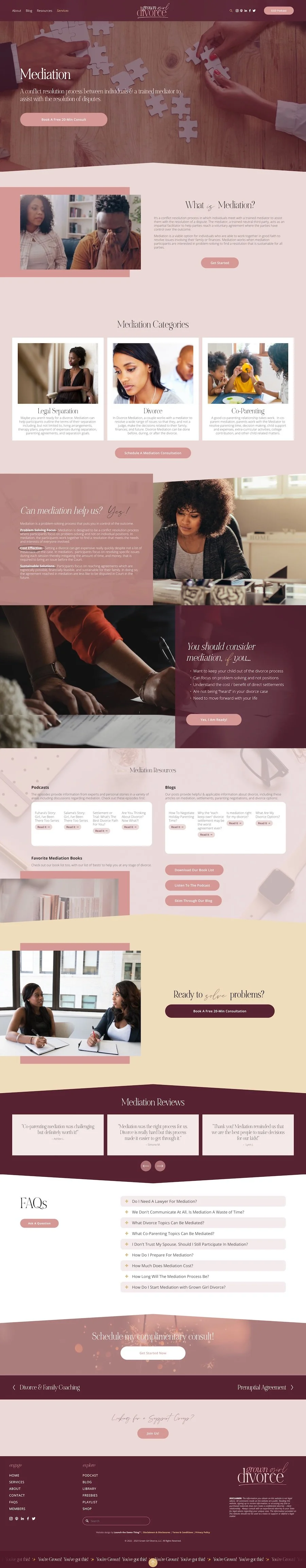We started fresh with all new colors, fonts, and designs. Her brand new website showcased her knowledge as a vast resource and created structure for the additional phases her business will soon be bringing to life including new services pages, support groups, a membership and a small shop.