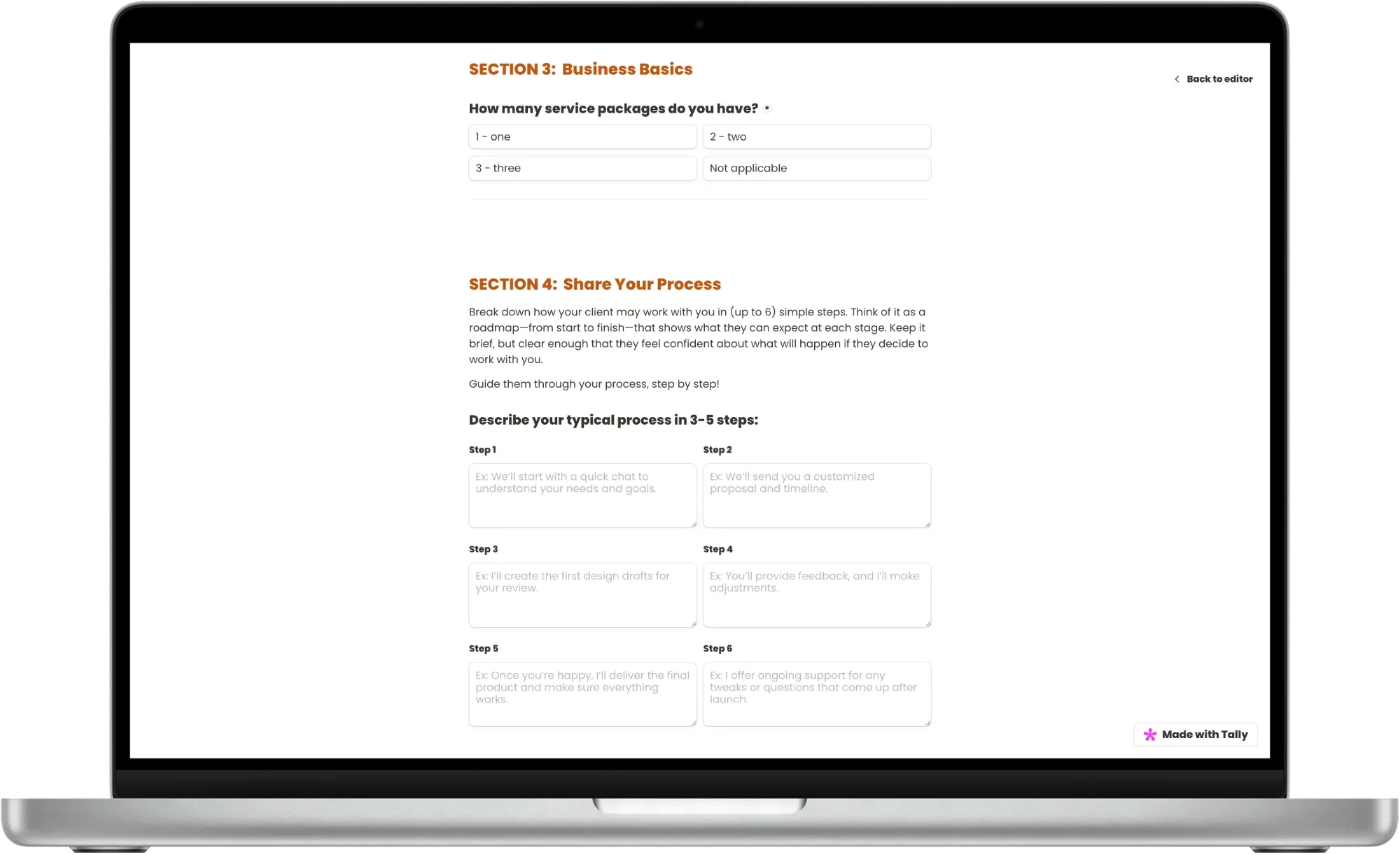 I’m on the free plan of Tally myself, so you’ll be able to copy & use the form template on a free plan too.